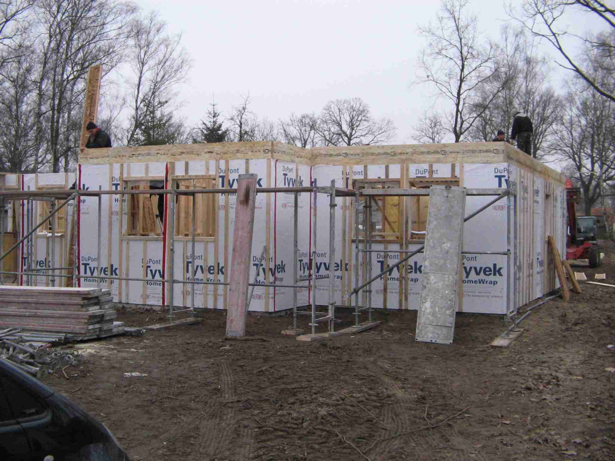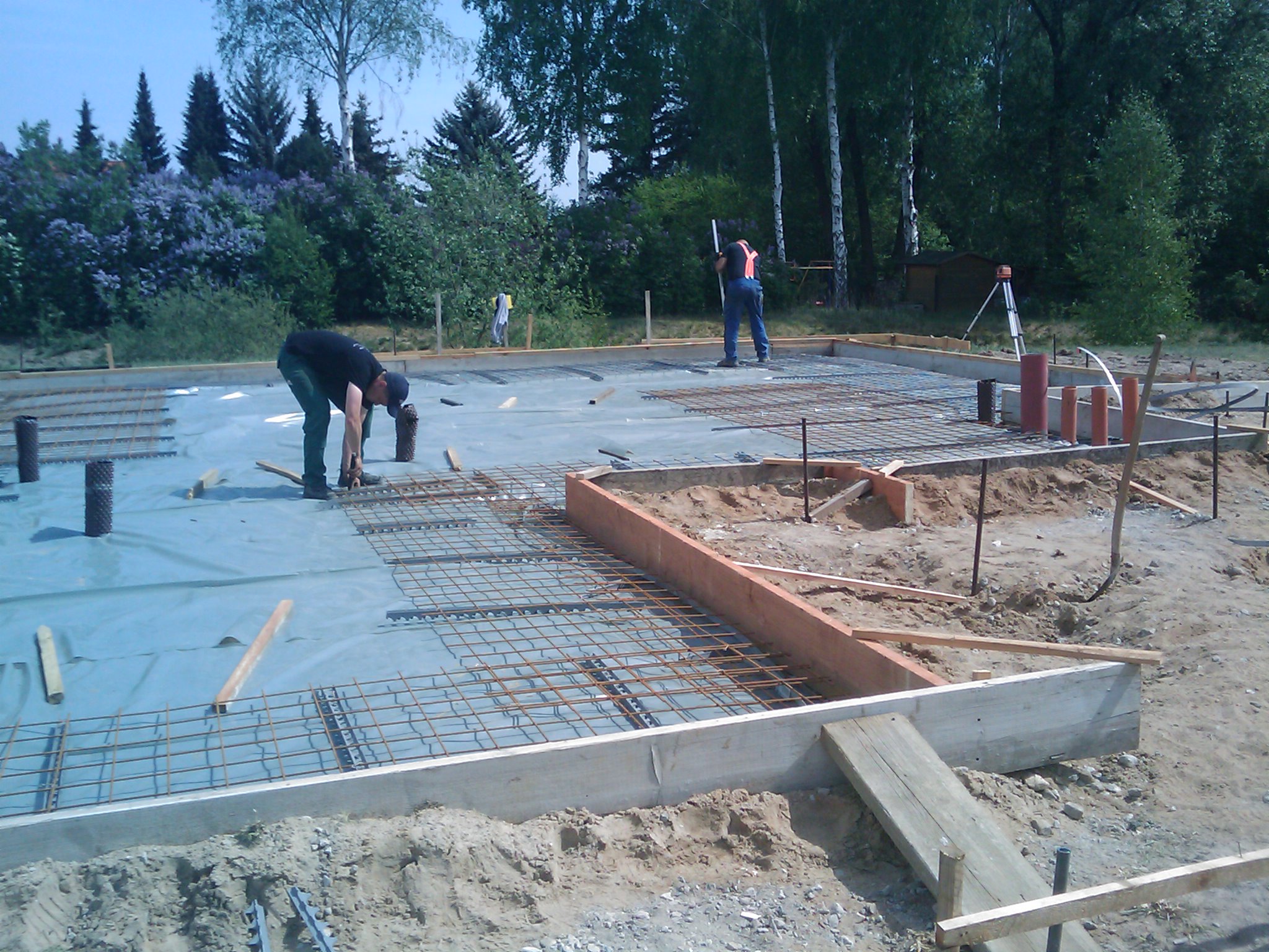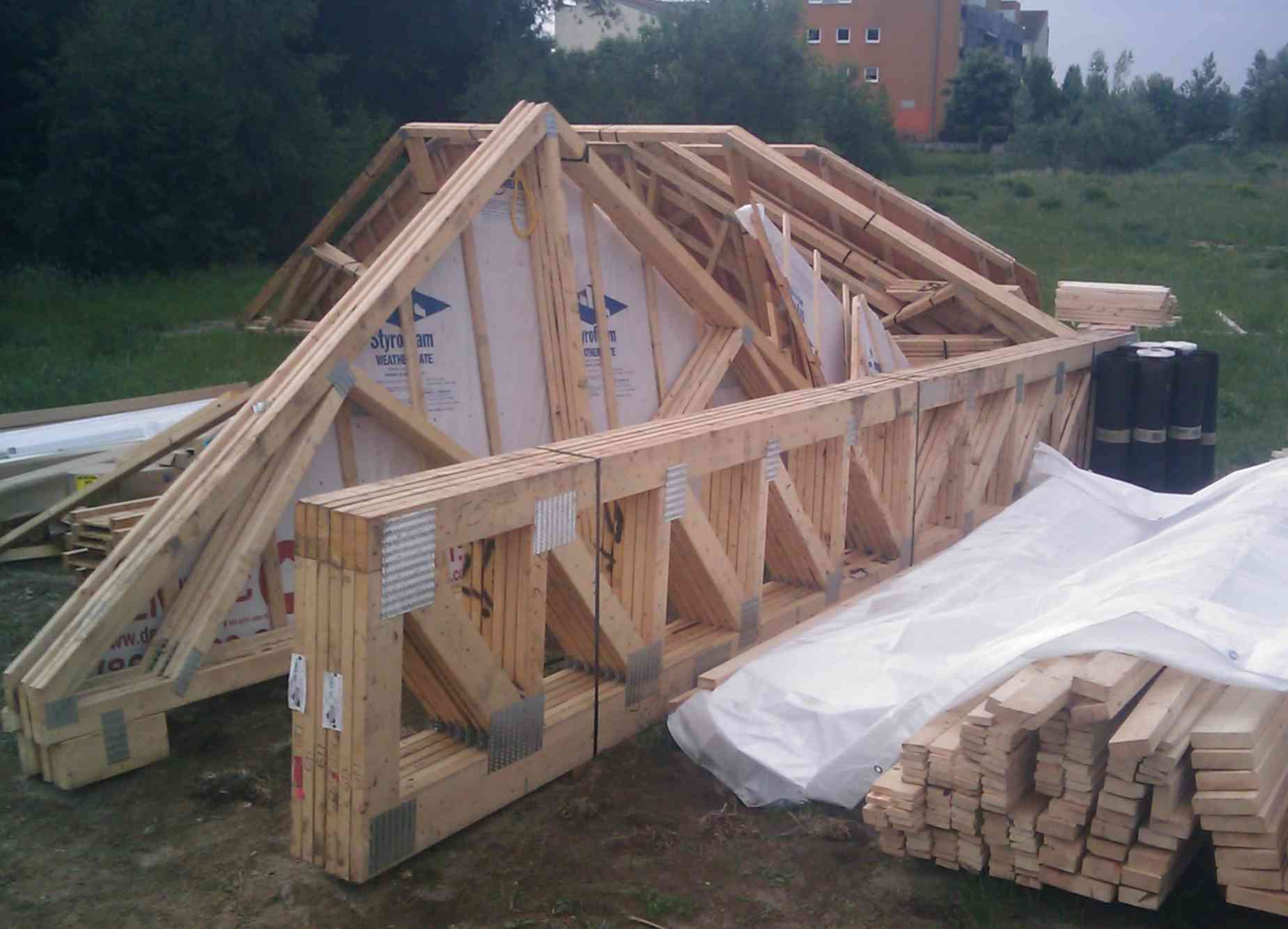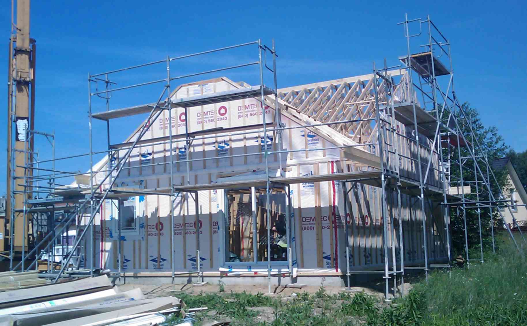 In Falkensee bei Berlin wurde ein weiteres Nordamerikanisches EFH erstellt. Der Baufortschritt wird hier dargestellt. Hier ist nach 5 Tagen die Bodenplatte inkl. Erdarbeiten erstellt und der Aufbau der Holzkonstruktion in Ausführung.