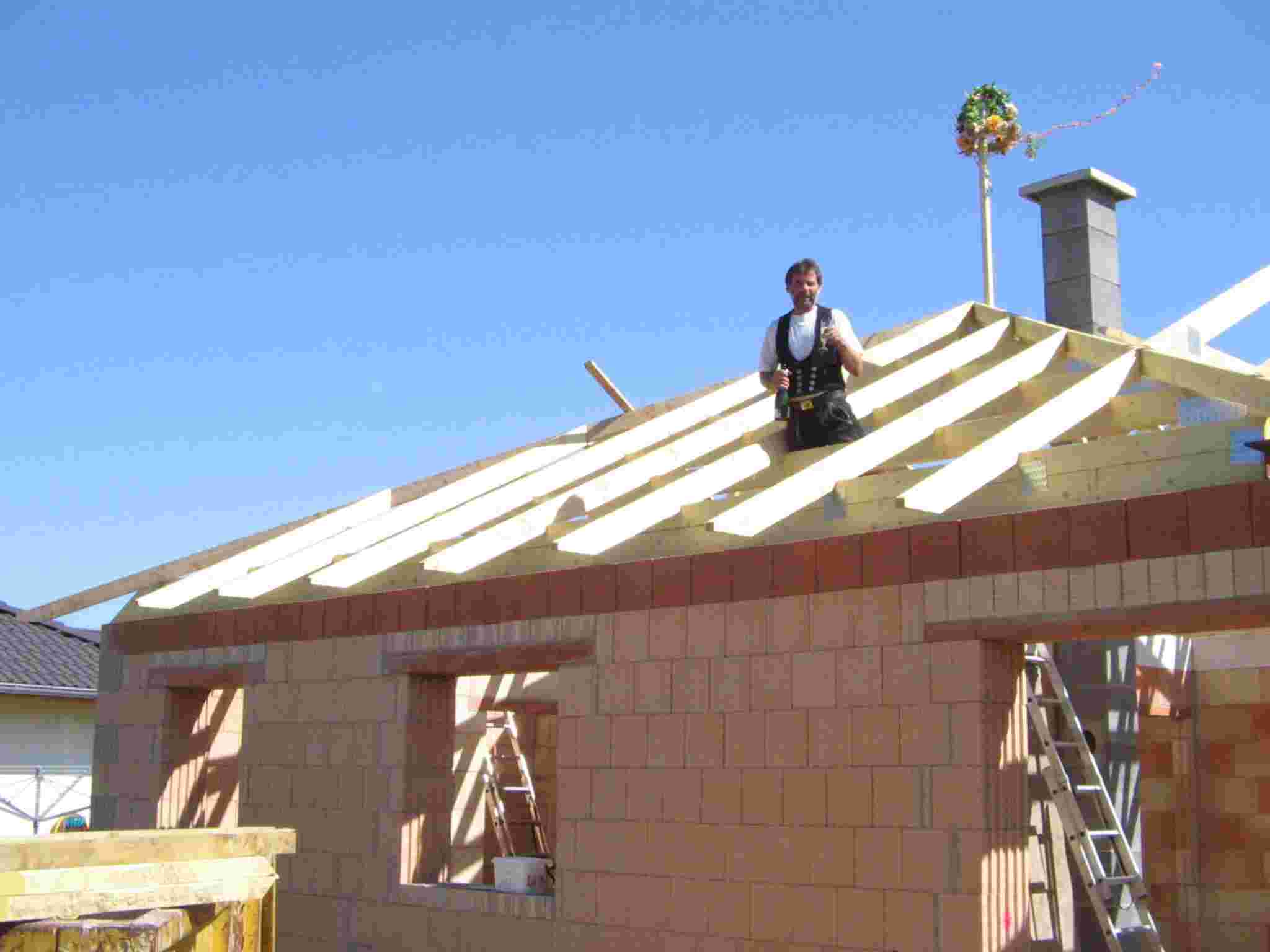Aquí la estructura de madera del techo (En alemán: Richtfest) de ambas casas.