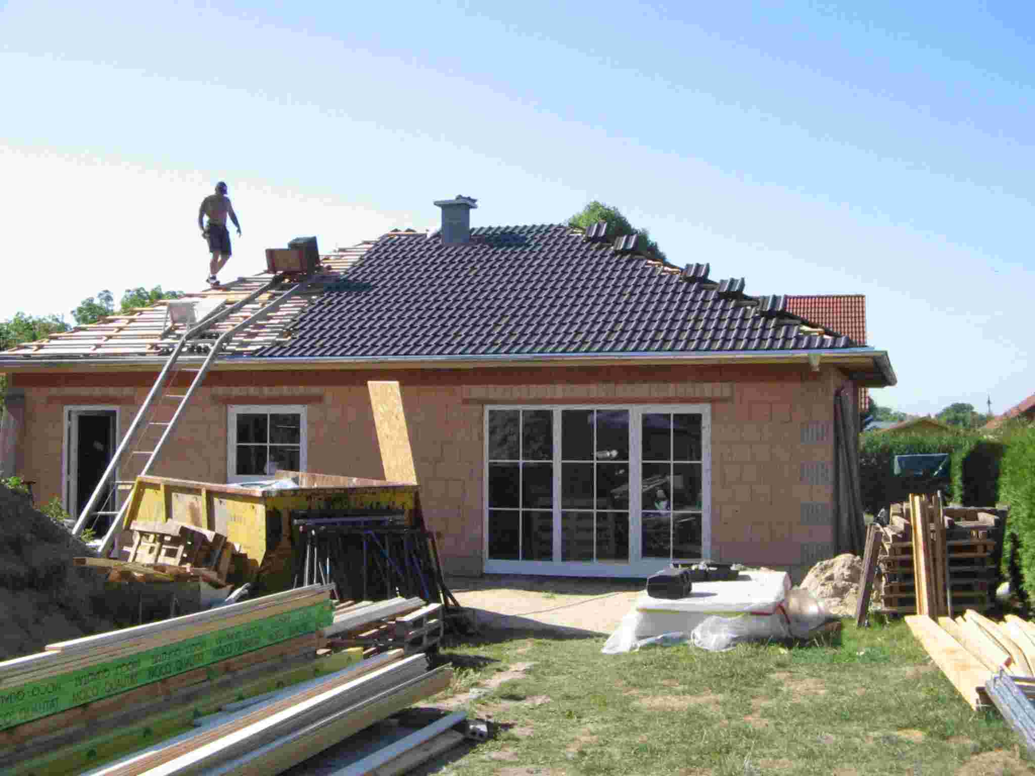 Los techos están casi construidos, las ventanas colocadas, ambas casas están cerradas solo 5 semanas después de haber iniciado la construcción.