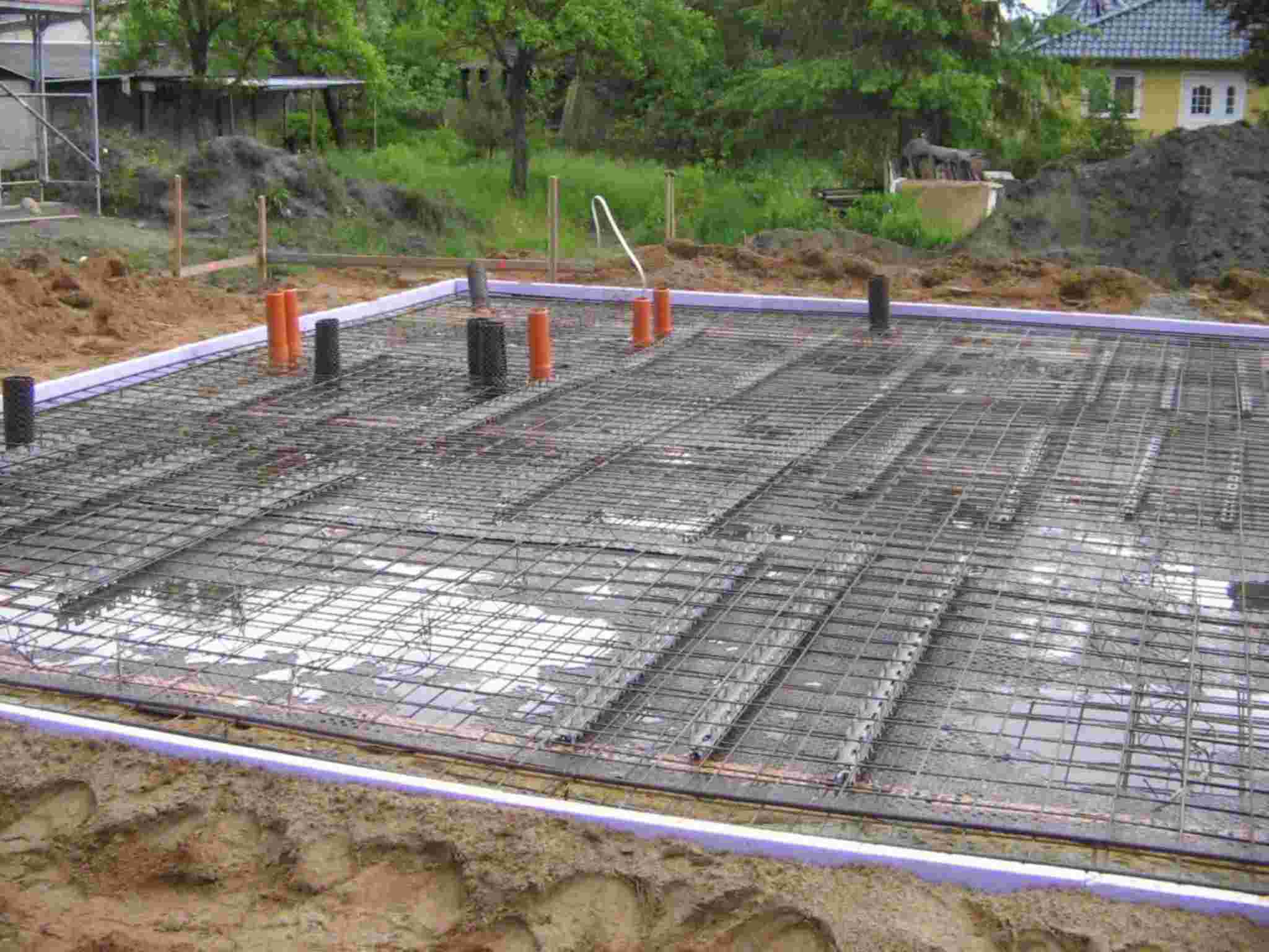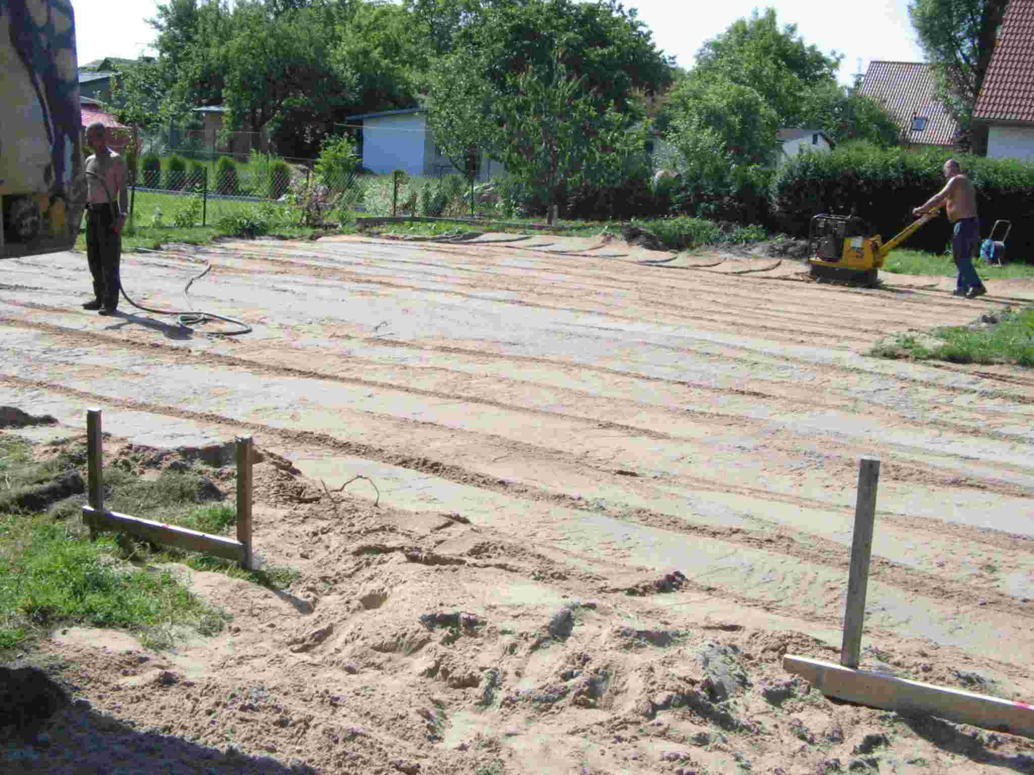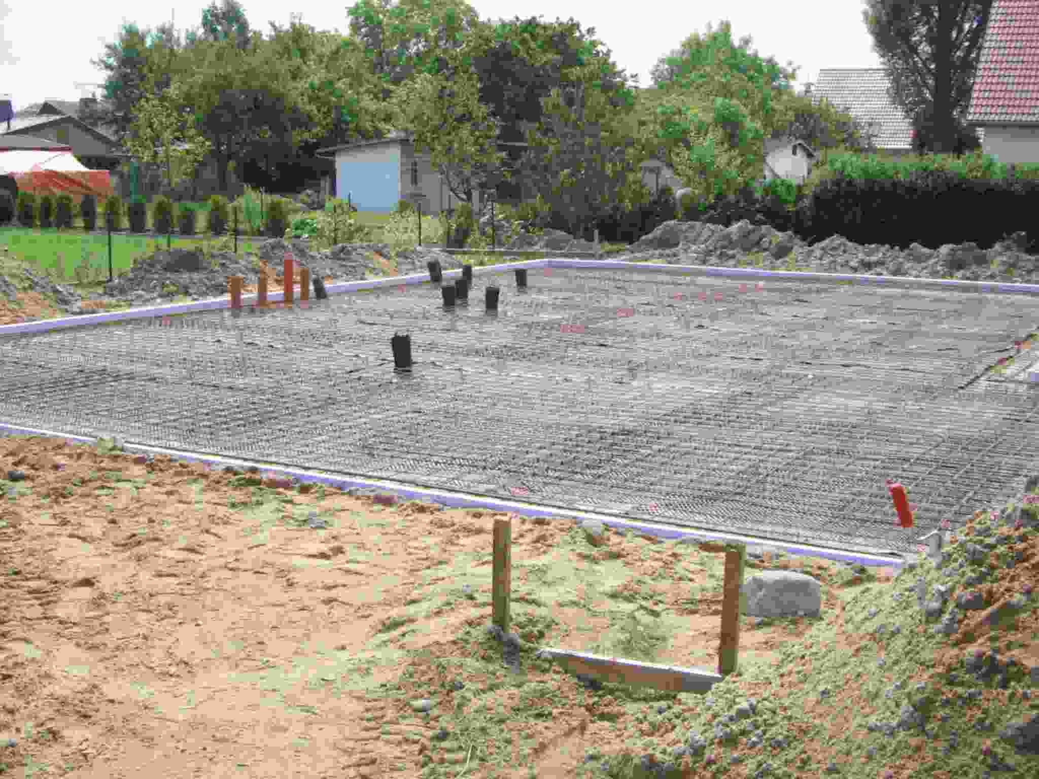 El inicio de las dos casas es exactamente el mismo:  El terraplen y la preparación de las fundaciones (a la izquierda 15.06.06), luego la construccón del piso de concreto (19.06.06), a la izquierda el piso para una casa de 1 planta, a la derecha para 2 plantas.