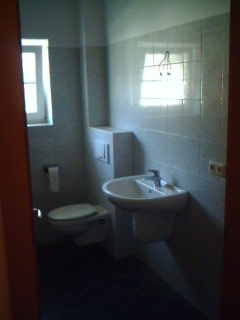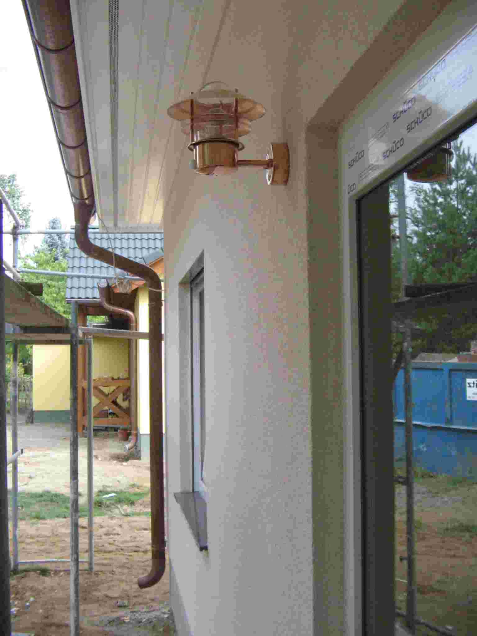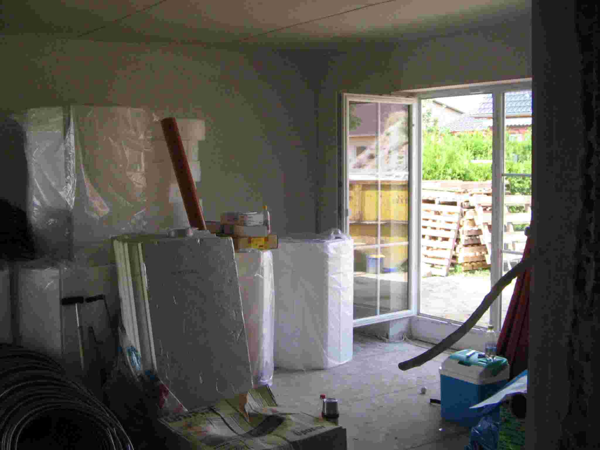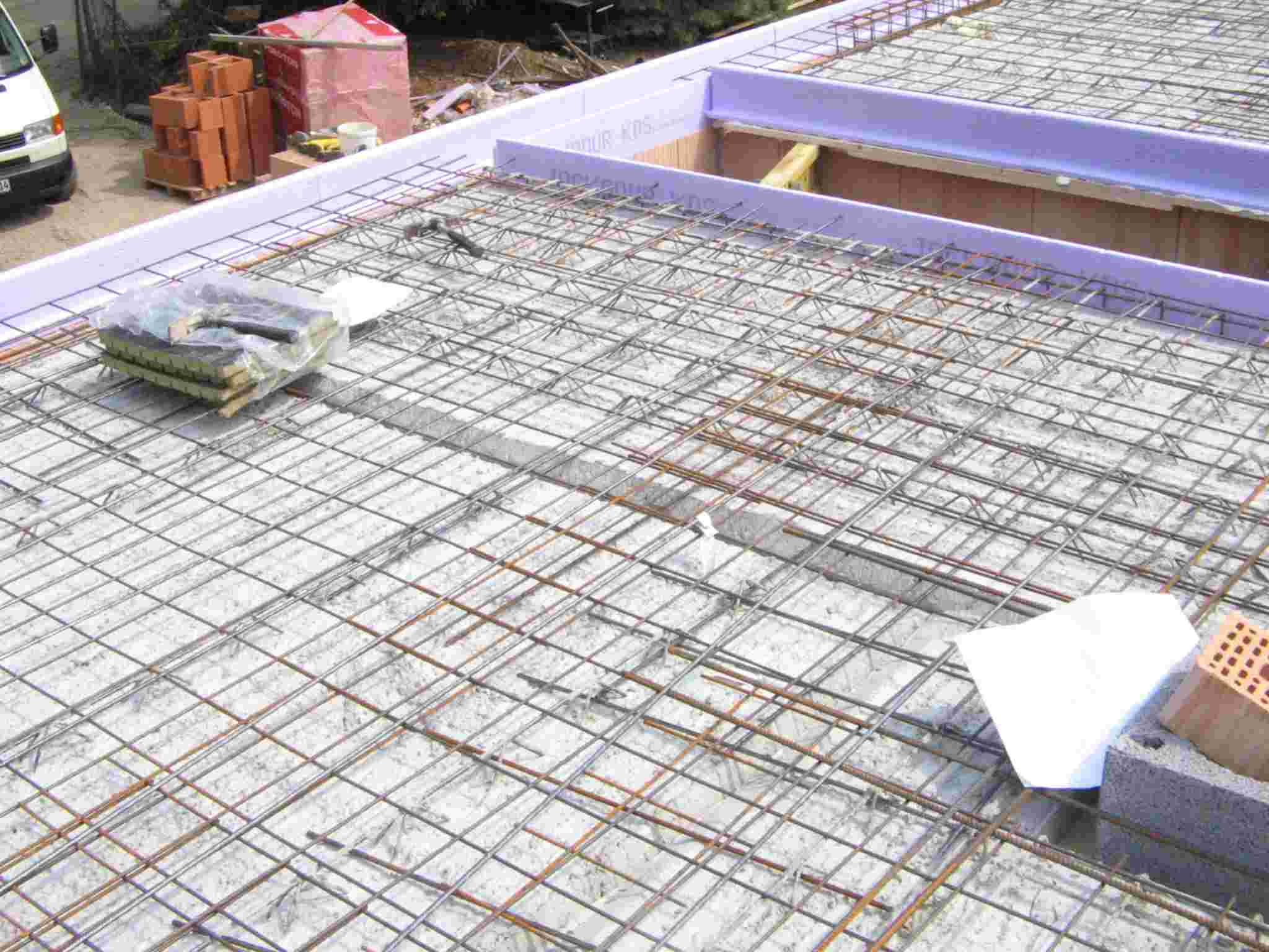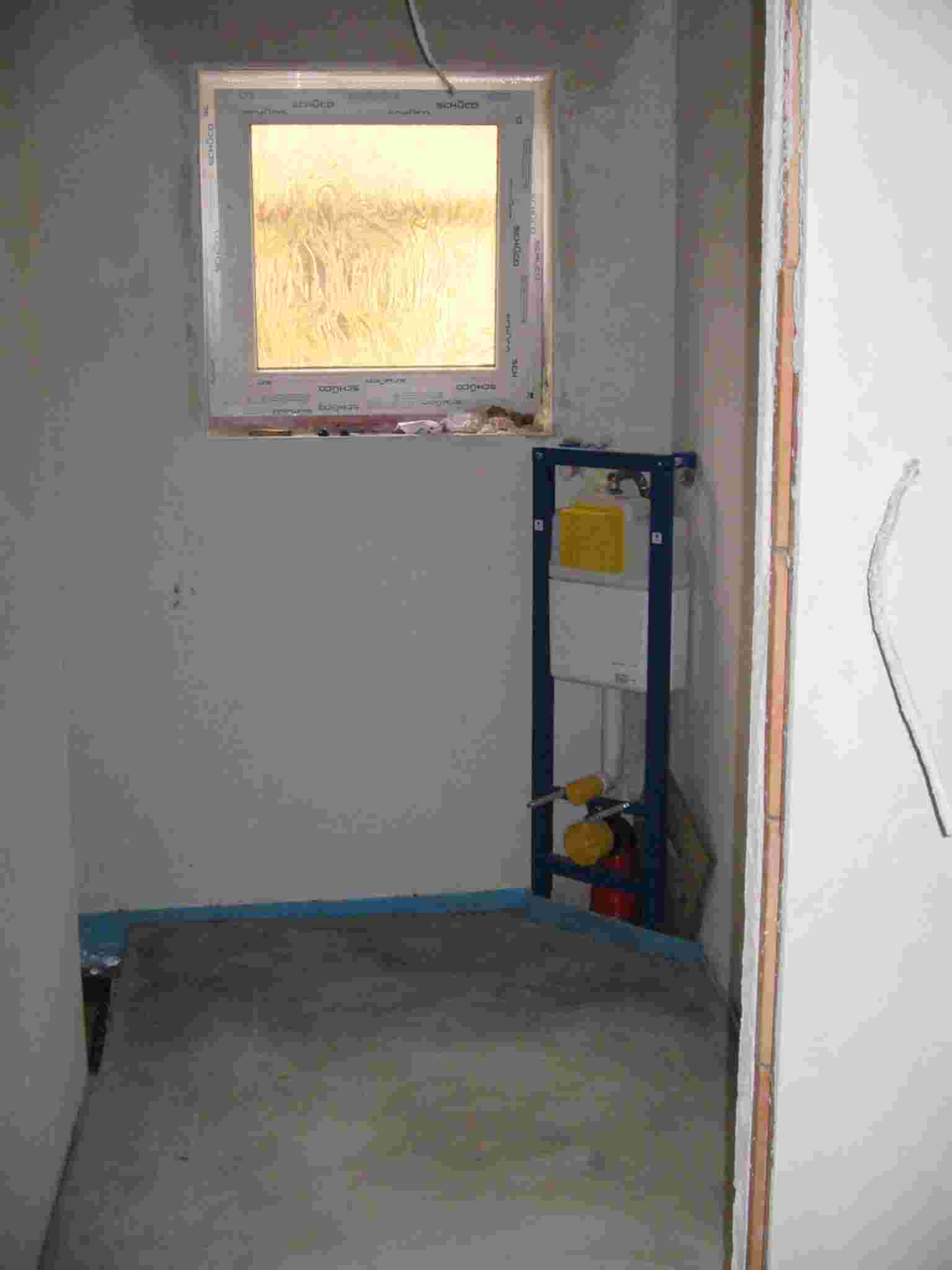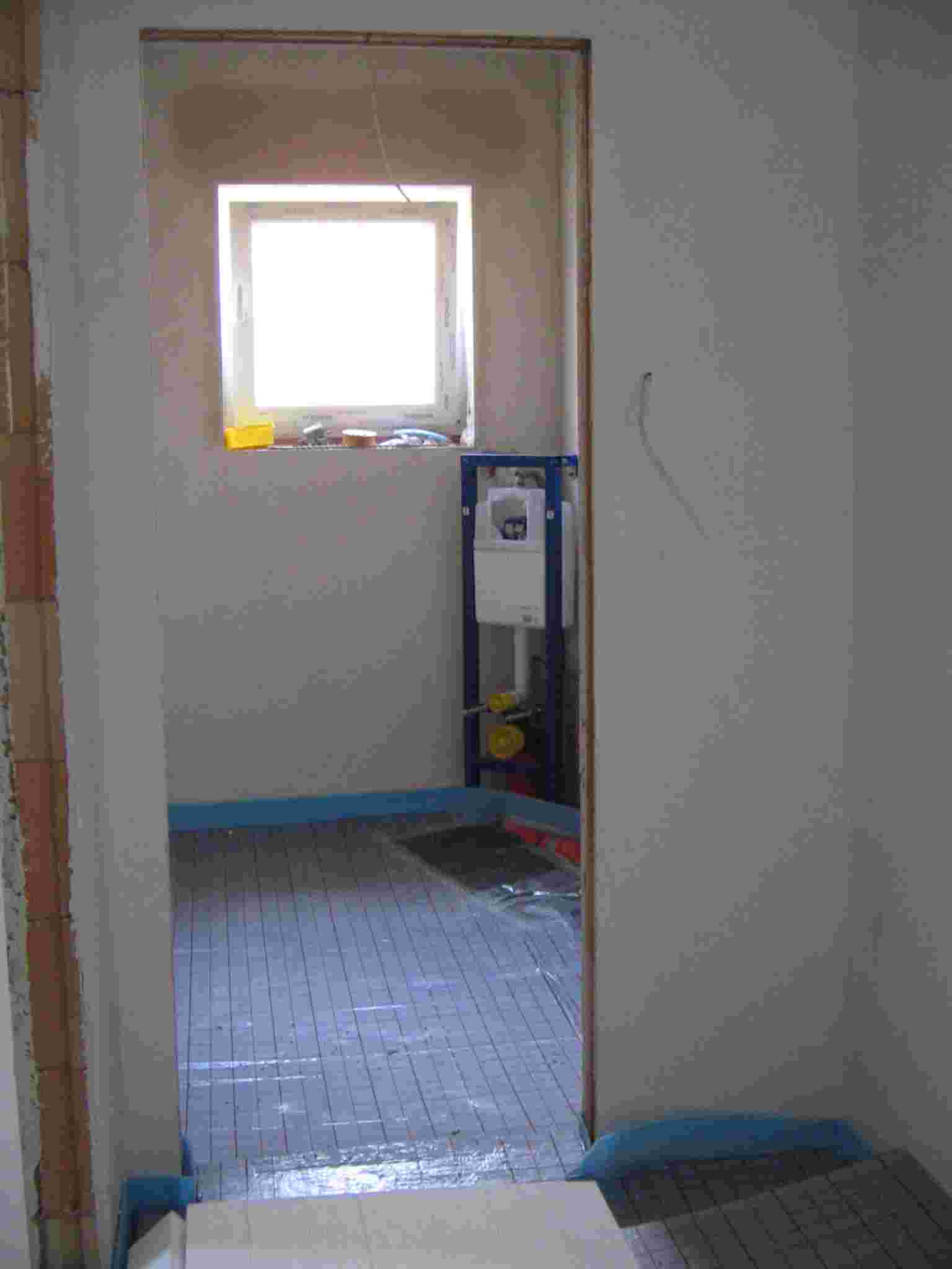El periódo de secado de obra de la casa de 1 planta ha terminado. Losas y objetos sanitarios son colocados. En la casa de 2 plantas se instalará un complejo sistema solar y de bomba de calefacción por energía de tierra. El periódo de secado de obra terminará dentro de una semana después del inicio de funcionamiento de la calefacción de piso de ésta casa. Luego se iniciarán los acabados internos.
