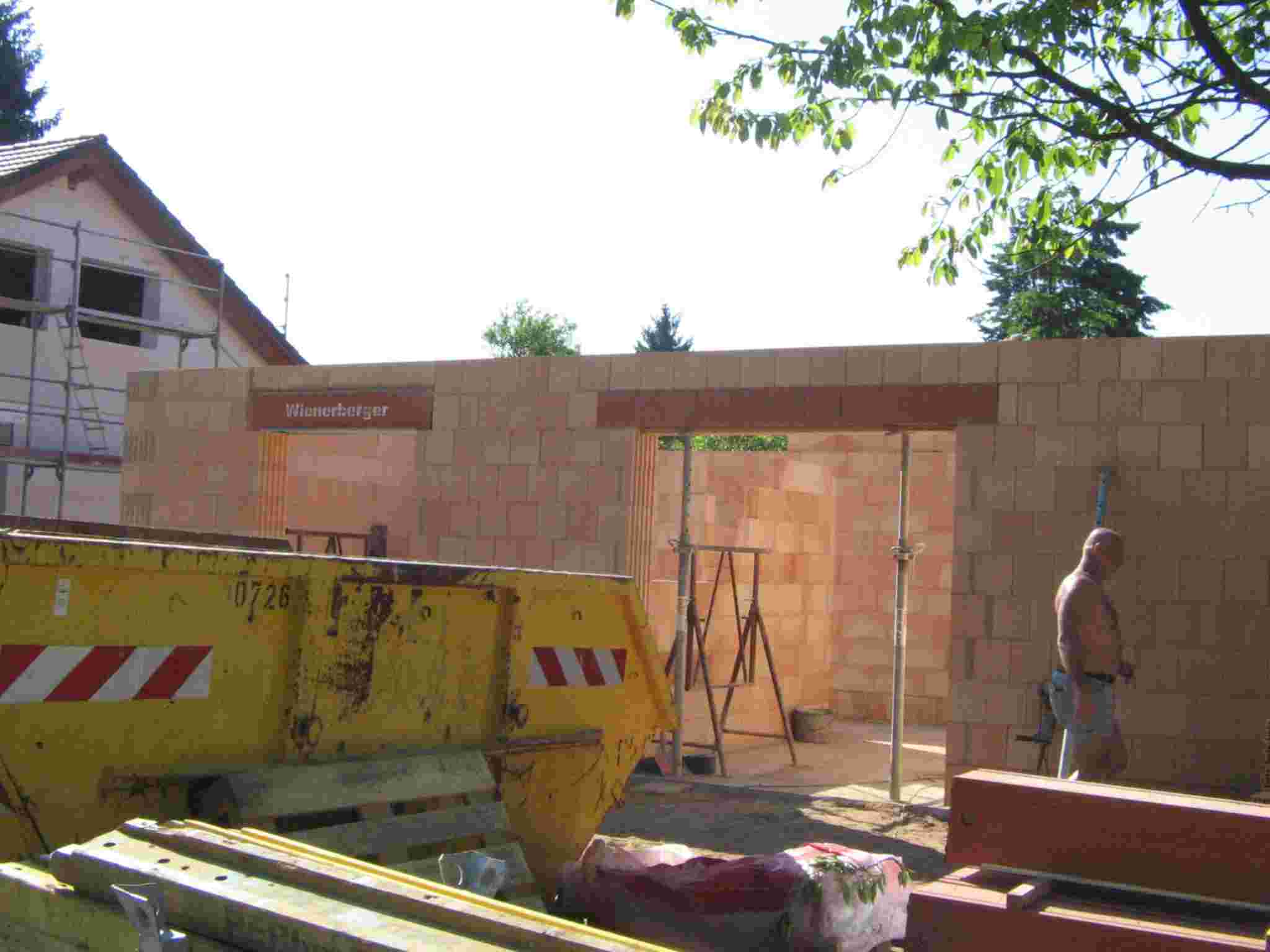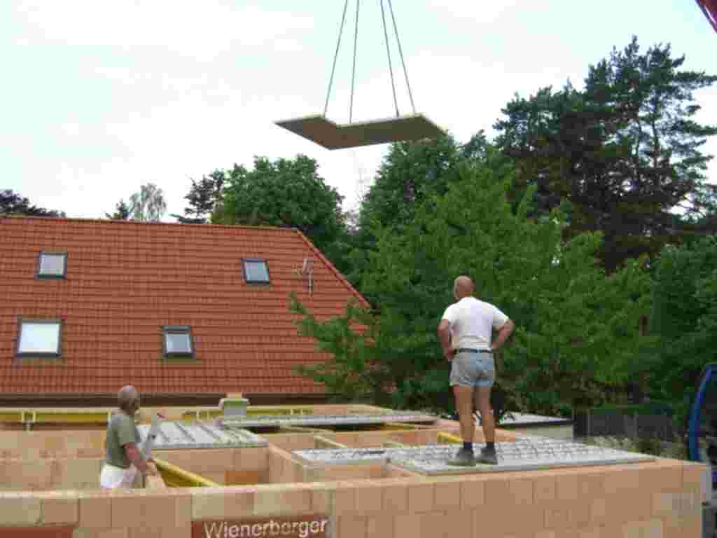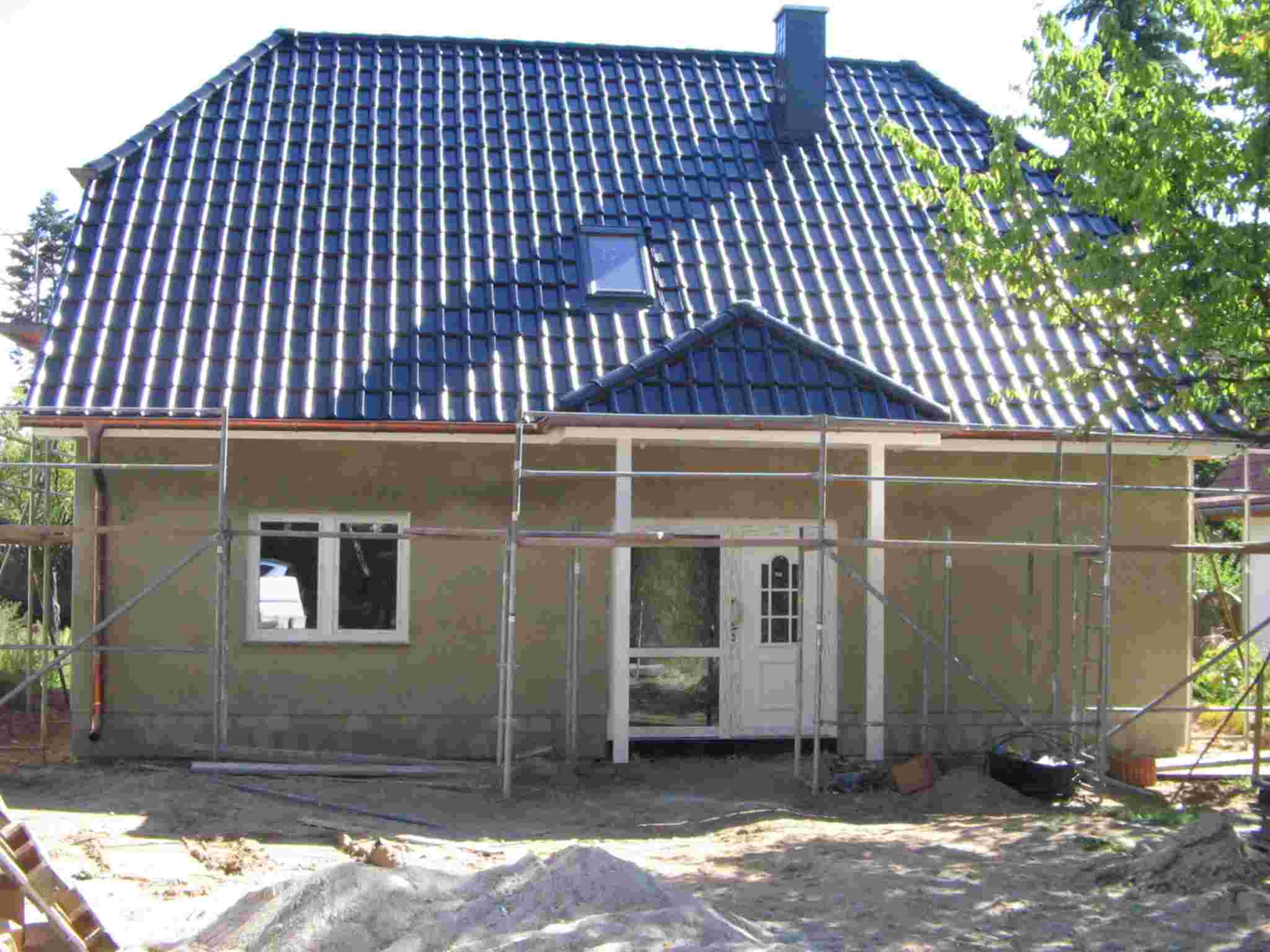 En Falkensee cerca de Berlin, se construyó una nueva casa Estilo Norteamericano. En el momento de las fotos, las fundaciones están construidas y las obras de carpintería se encuentran en ejecución. Había informes continuos acerca del avance de las obras