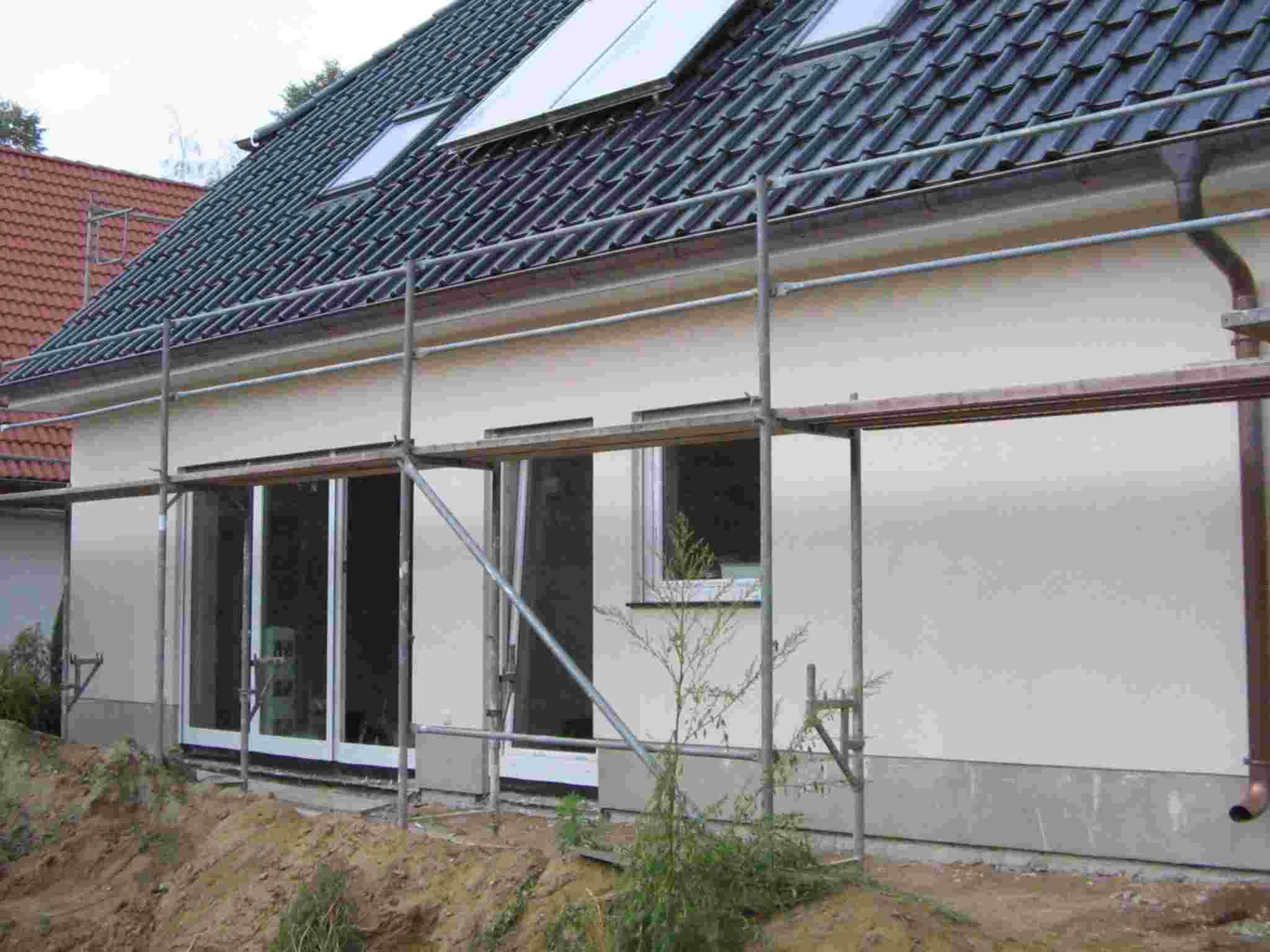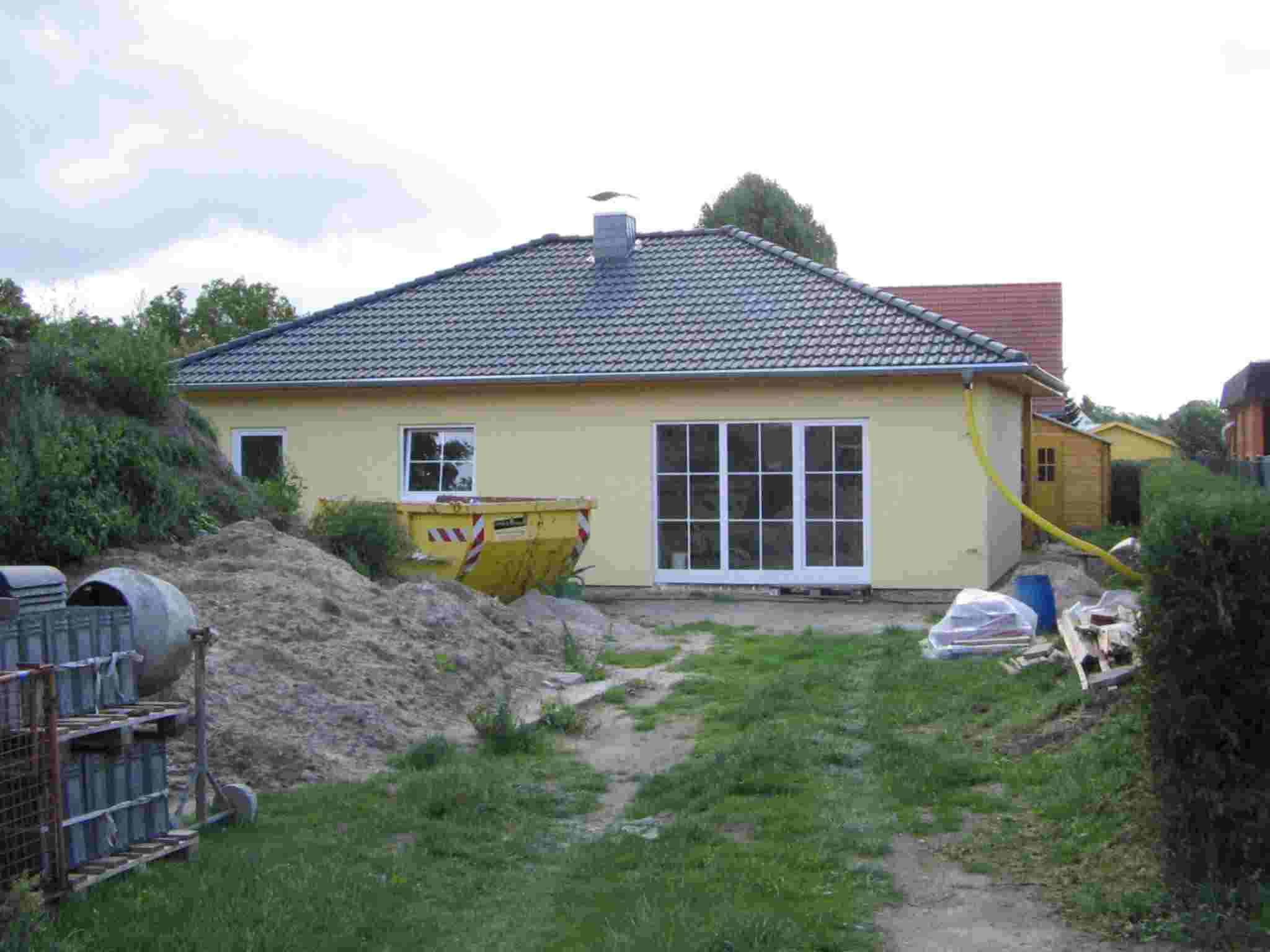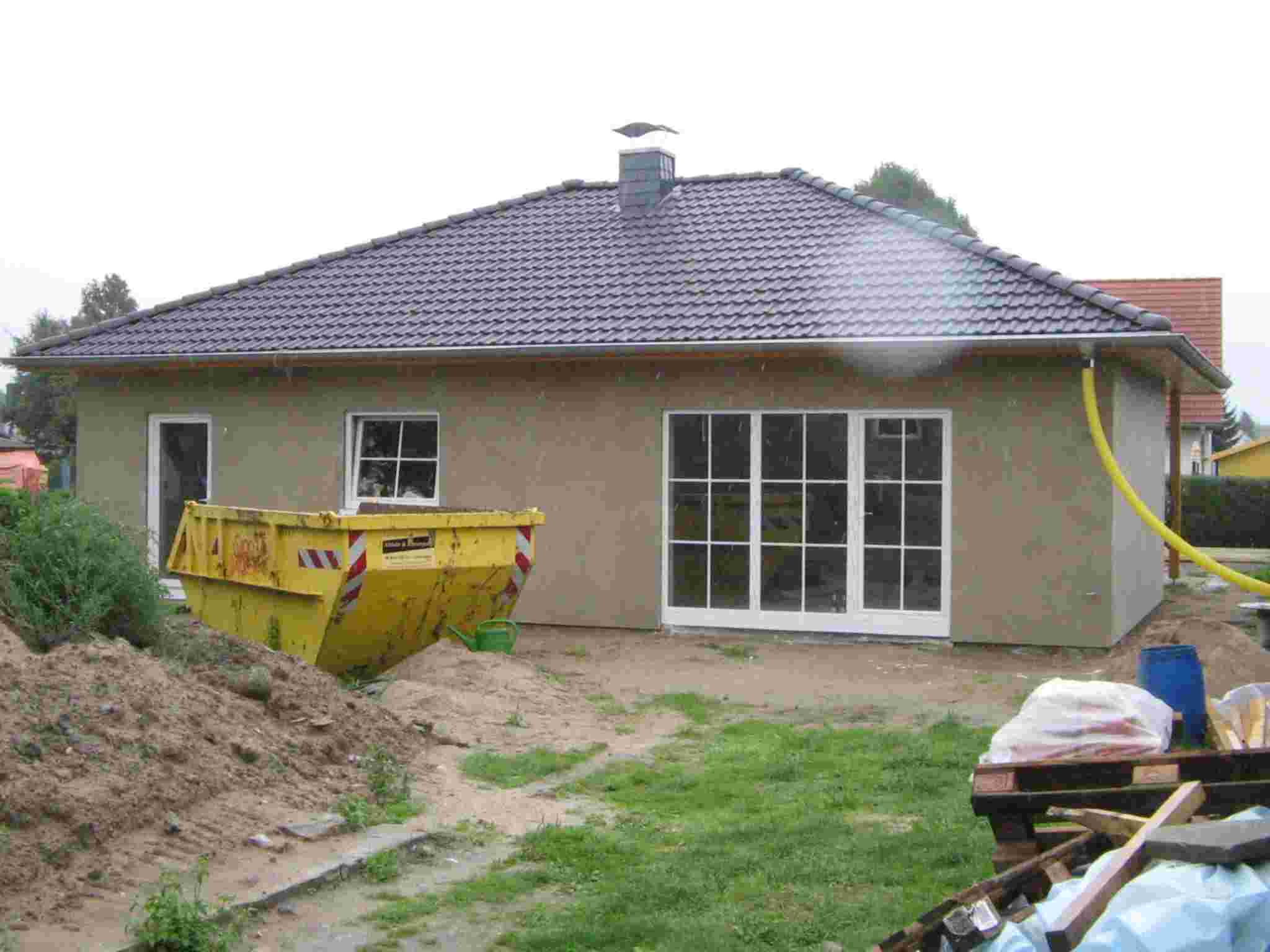 En Falkensee cerca de Berlin, se construyó una nueva casa Estilo Norteamericano. En el momento de las fotos, las fundaciones están construidas y las obras de carpintería se encuentran en ejecución. Había informes continuos acerca del avance de las obras