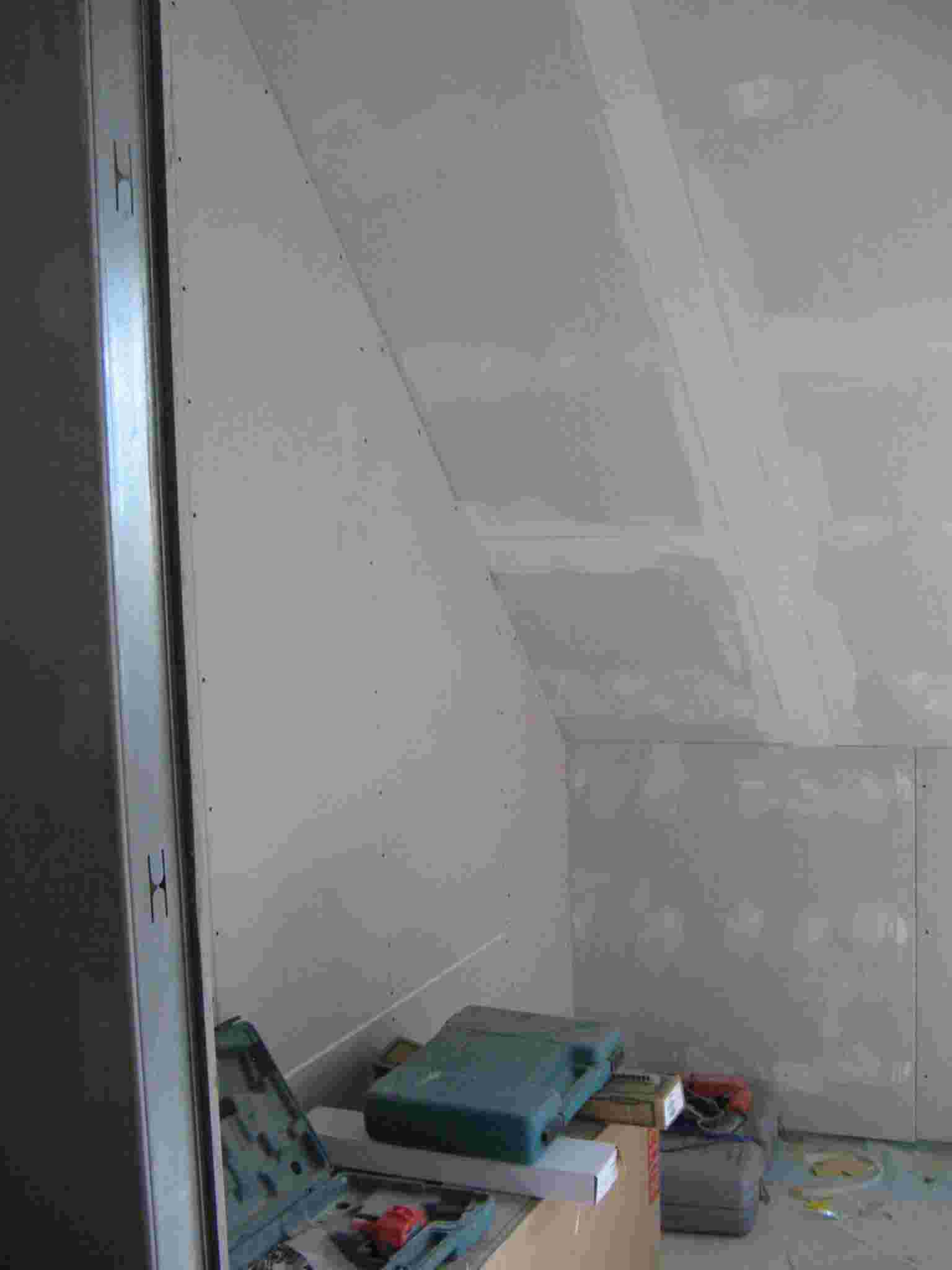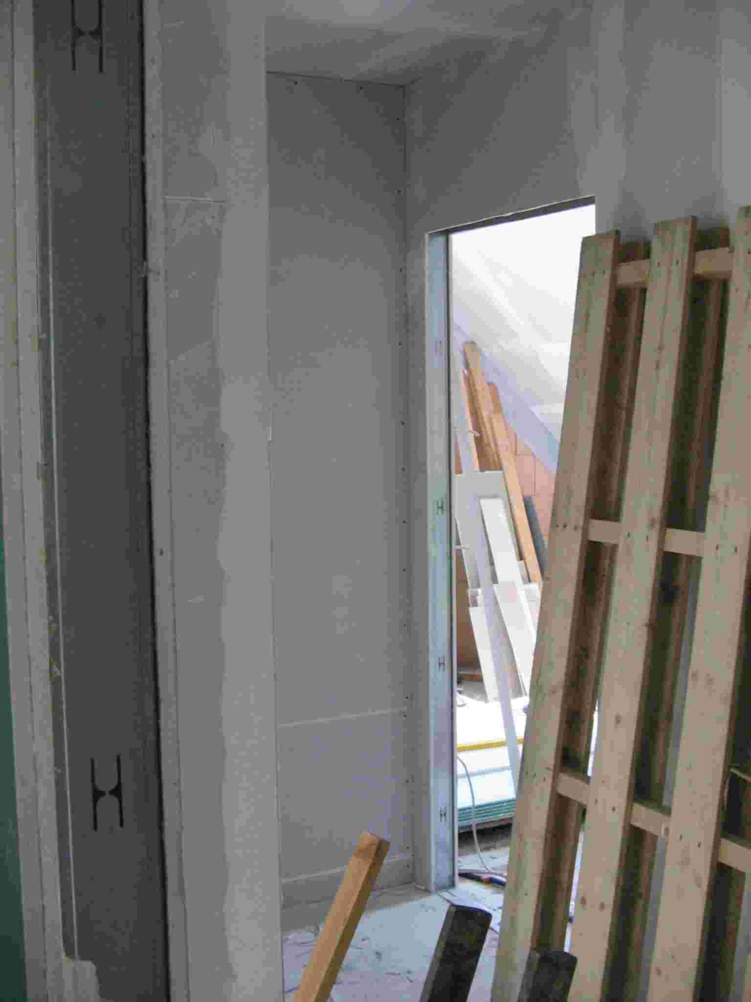 La terminación interior de las casas avanza rápidamente. Las recubiertas de carton yeso están colocadas, las instalaciones eléctricas y los enlucidos han sido completados. La calefacción y la plomería estan siendo colocadas actualmente.
