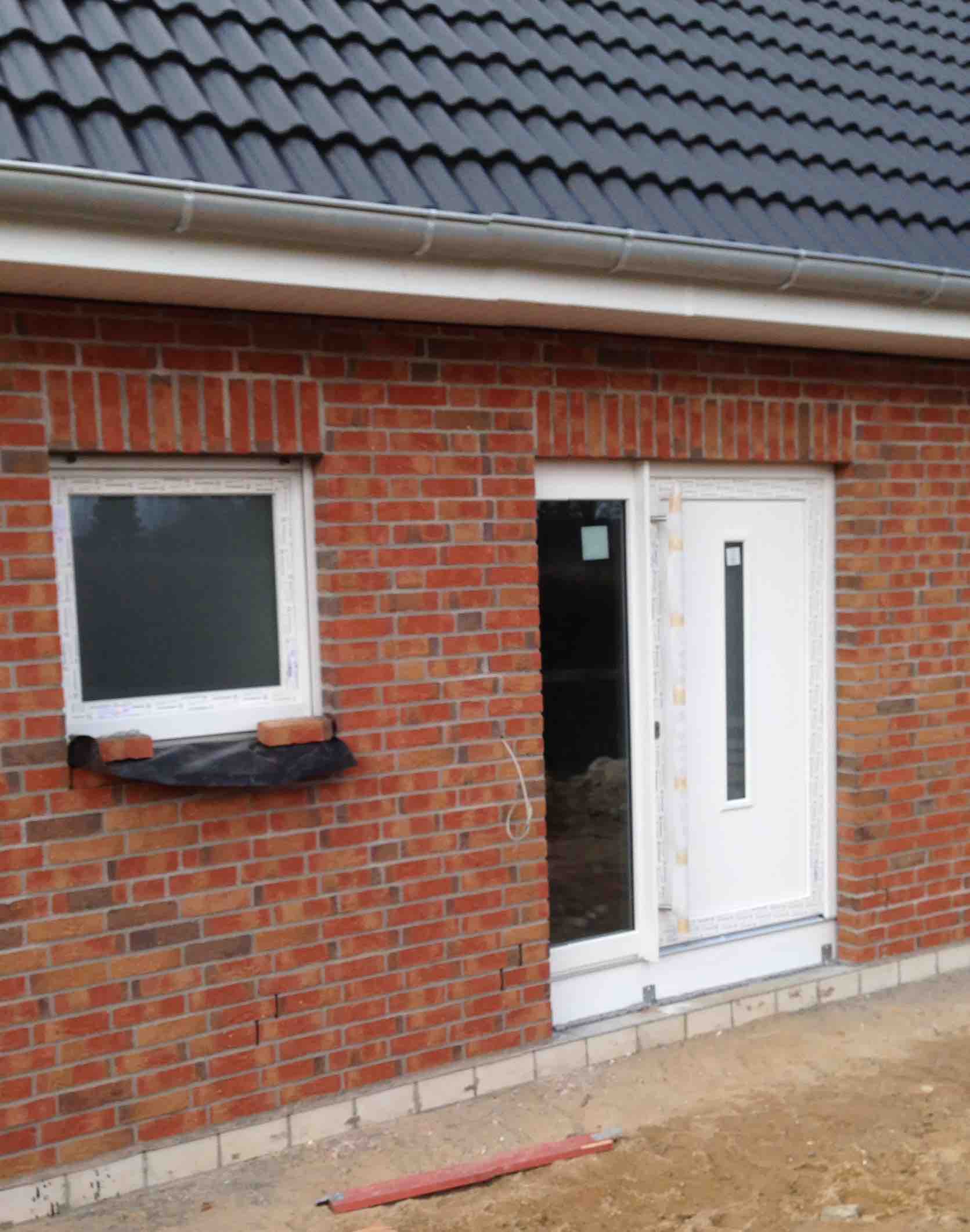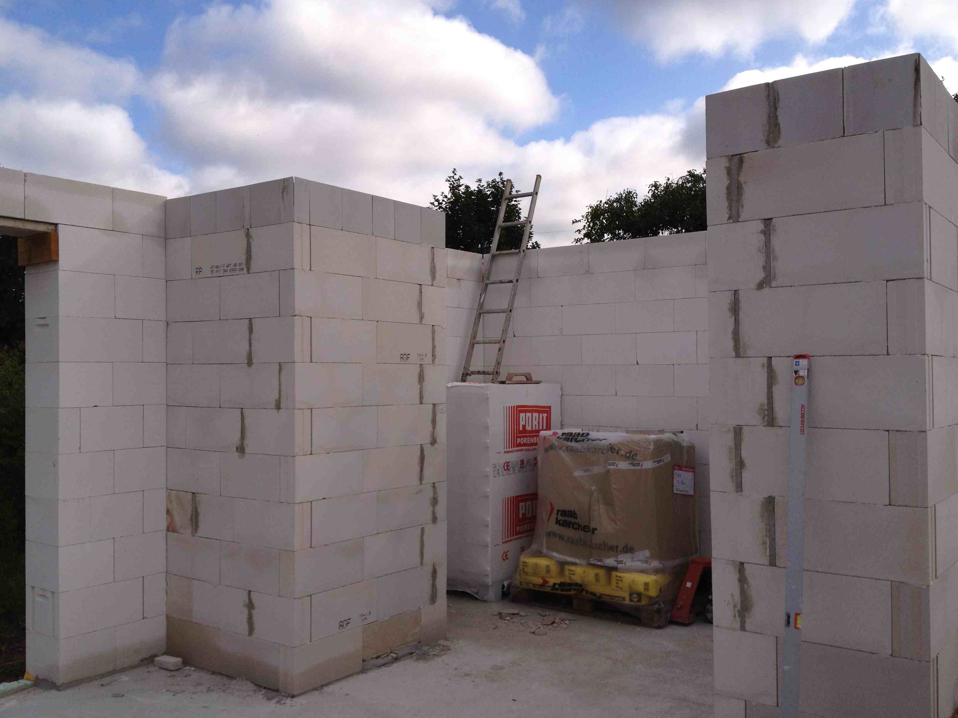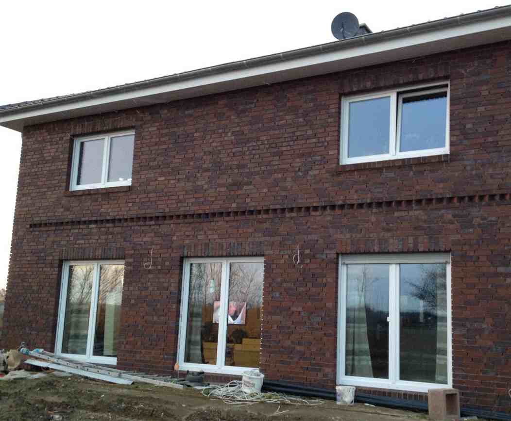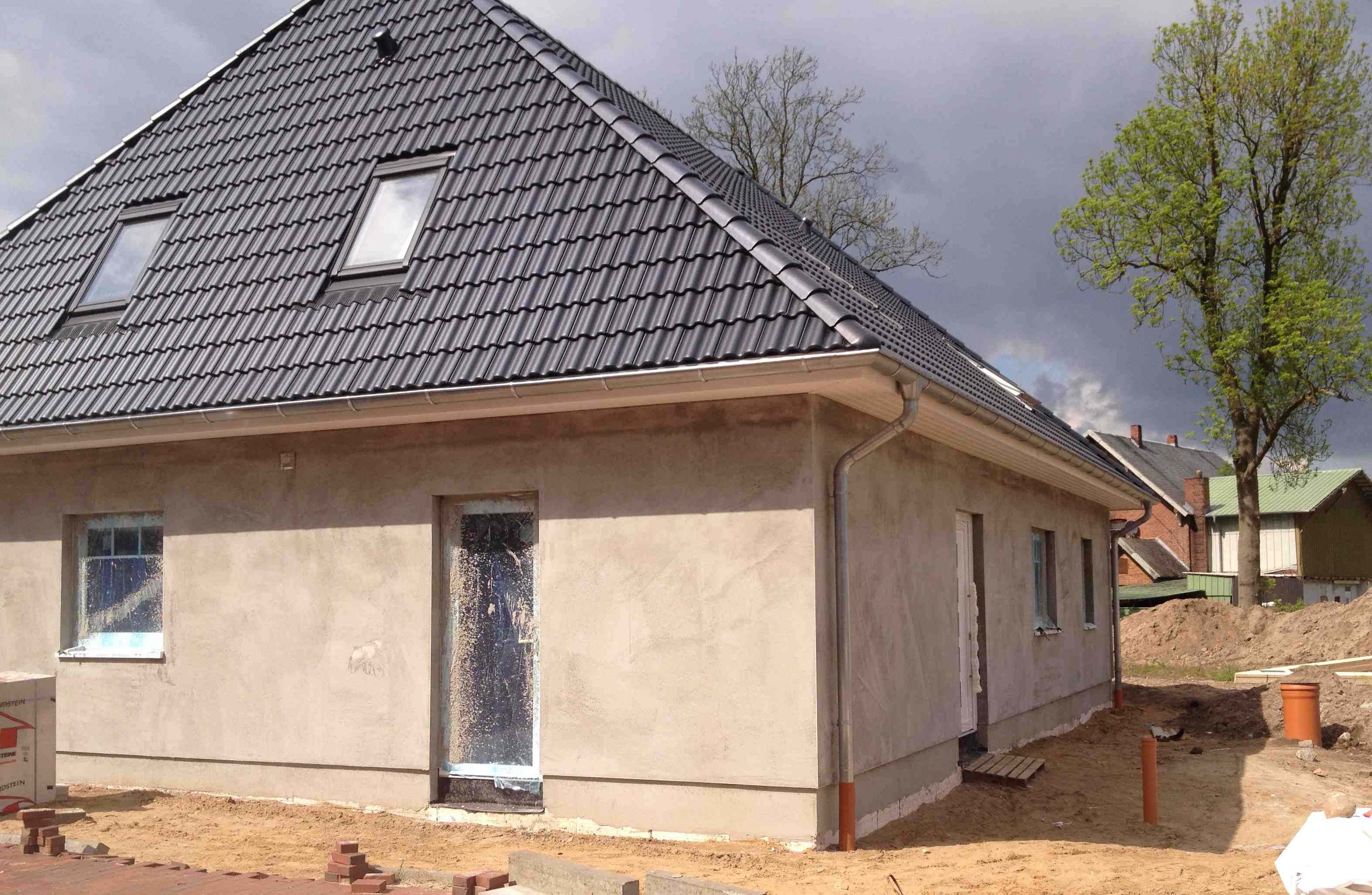 | SEPTEMBER 2012 | 12.09.12 THE SECOND HOUSE IN NEUENHAGEN - ROUGH WALL PLASTER WORKS OUTSIDE CONCLUDED, THE CHIMNEY BUILT A NEW HOUSE IN THE NORTH OF GERMANY BEGUN Left: