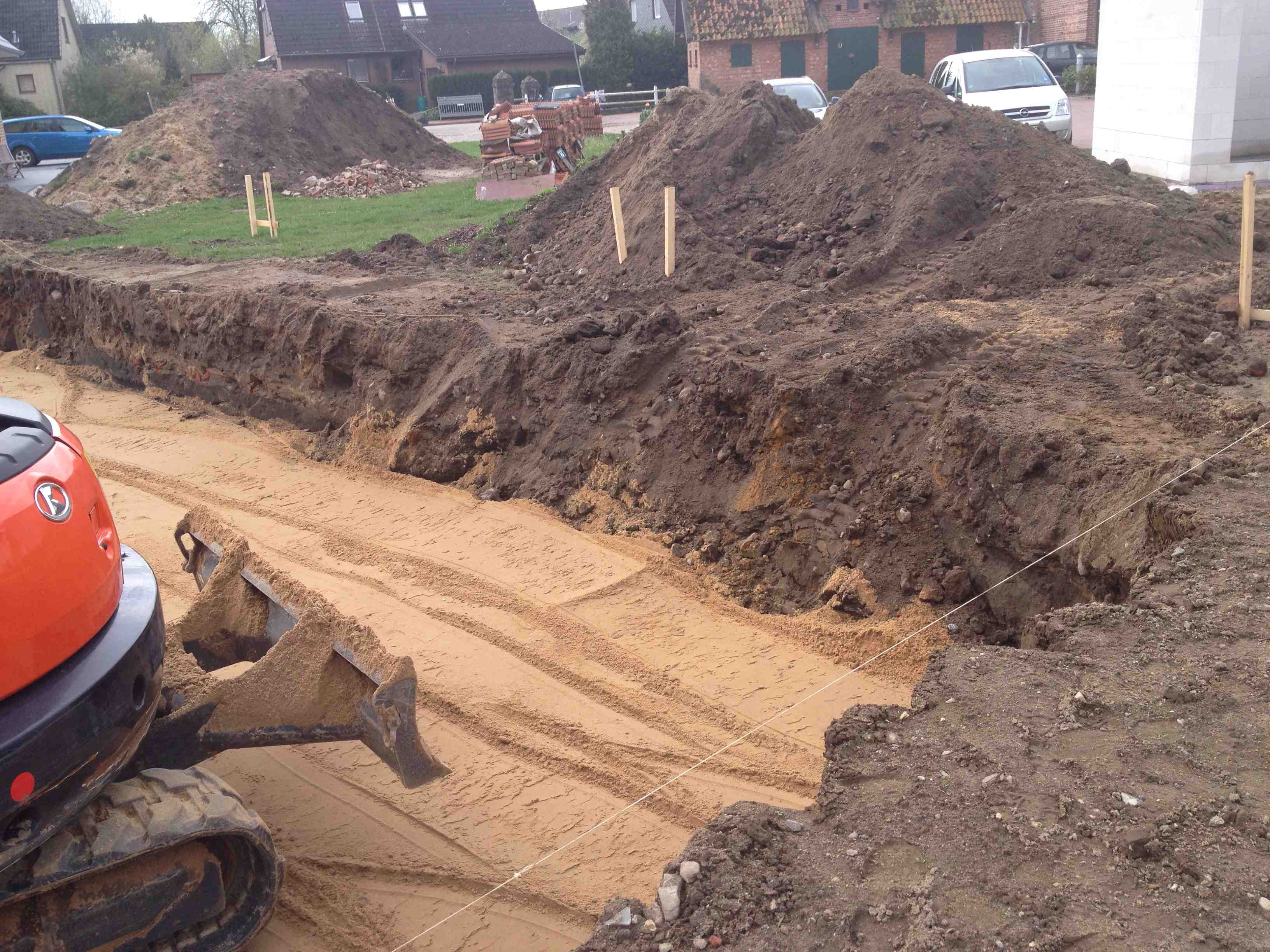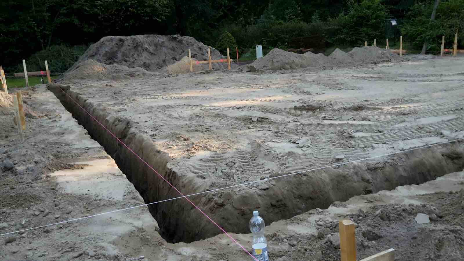 20201203/20201208 The construction site of the kinder: The basement is excavated and prepared to construct the concrete slab Preparing the