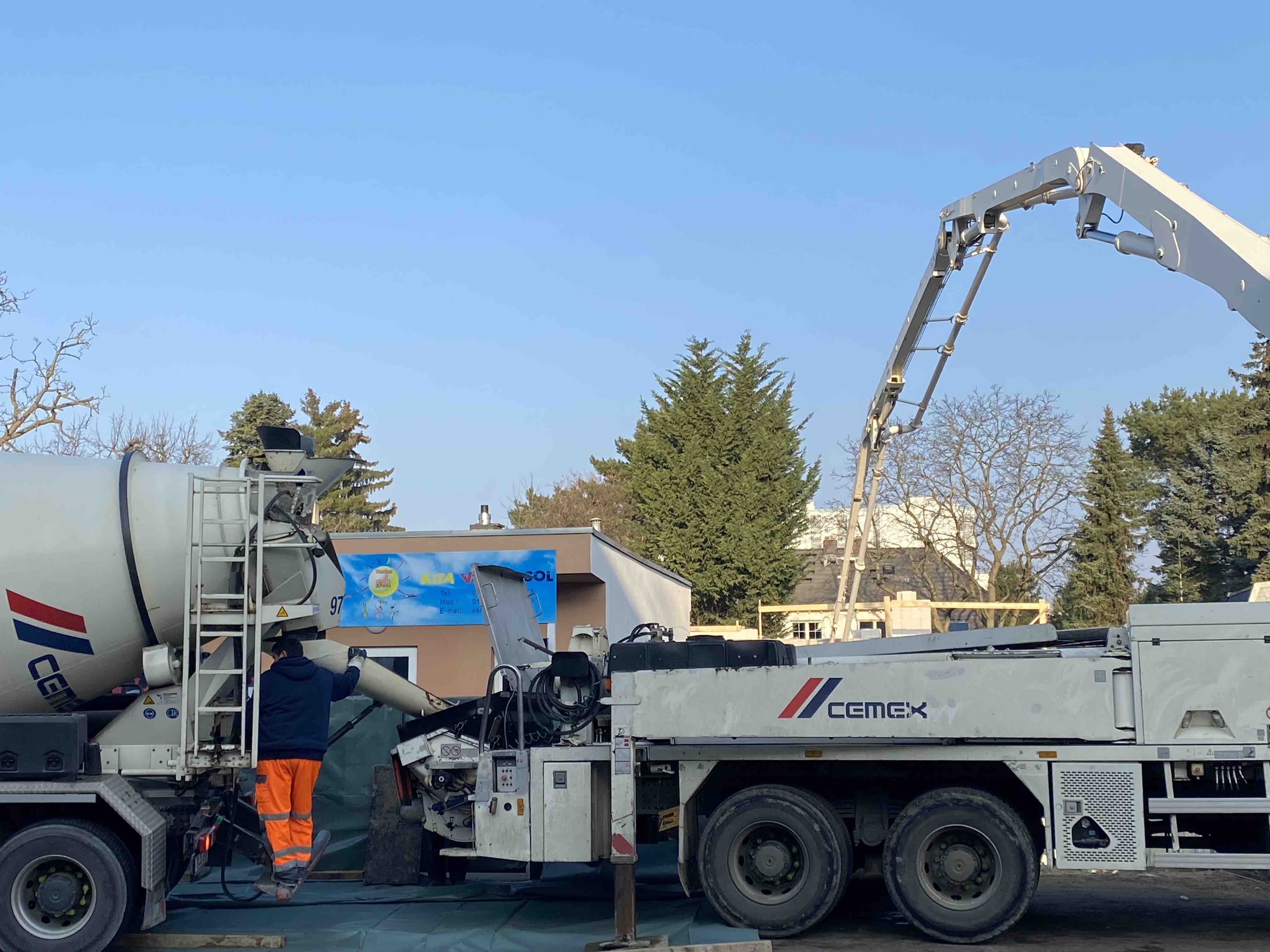 | JANUARY 2013 | 07.01.2013 DURING FROST FREE DAYS, CONSTRUCTION GOES ON. AFTER BUILDING IN THE HEATING TUBES, THE CONCRETE SLAB WAS POURRED IN THE MAHLSDORF HOME, AND HEATING CAN BEGIN, TO INDEPENDIZE FURTHER WORKS FROM WINTER INFLUENCE. ![]() |